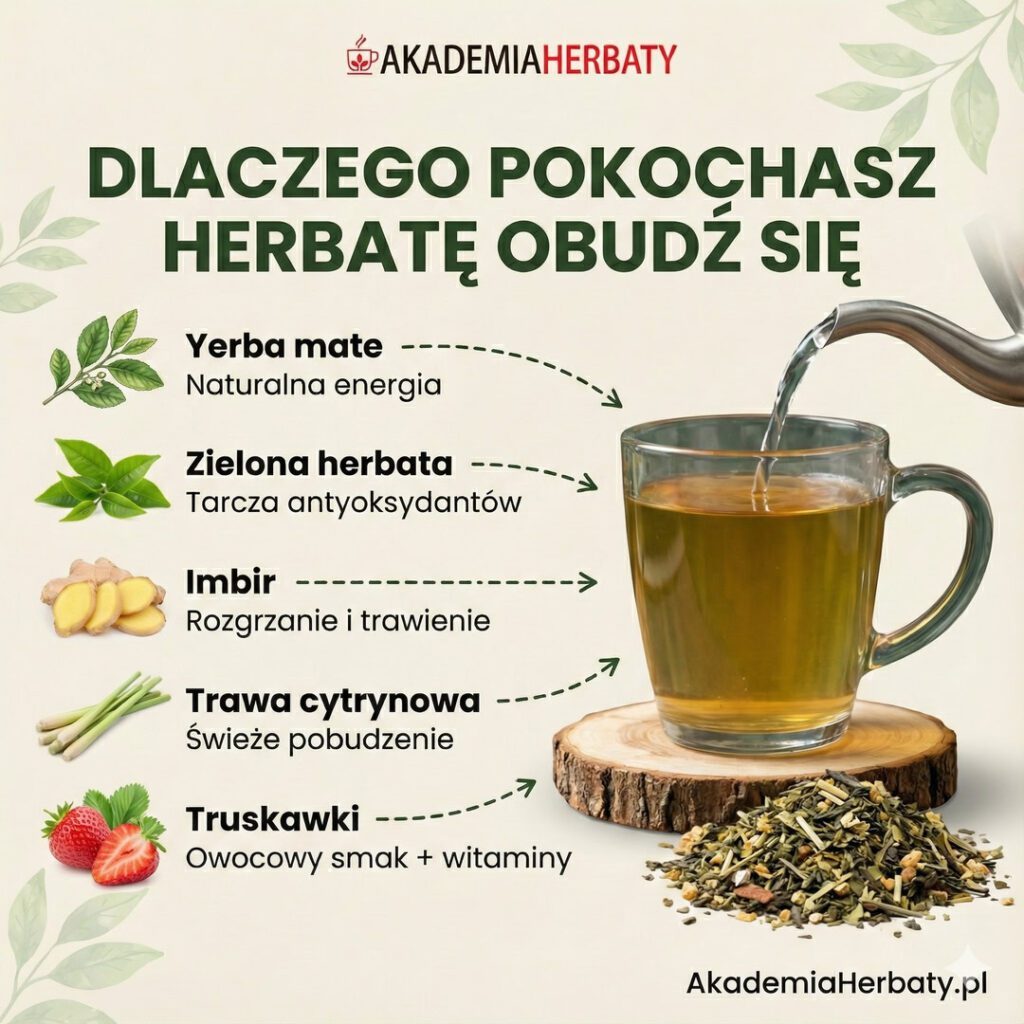 - Doskonałe połączenie smaków listków mate, zielonej herbaty, imbiru, truskawek i trawy cytrynowej