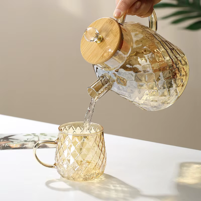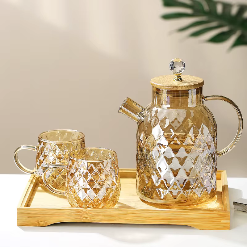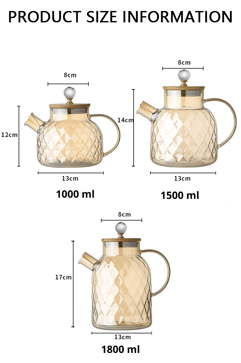 Szklany Czajnik 1L I 1,5L I 1,8L – Diamond Design i Bambusowa Pokrywka