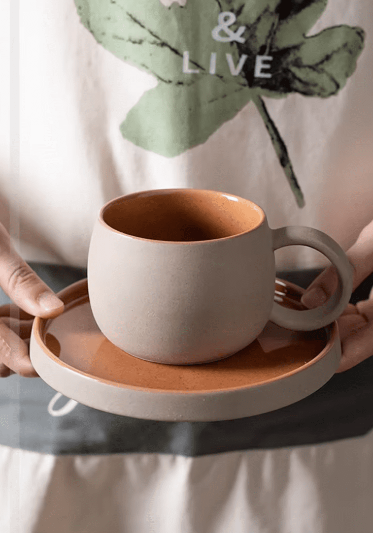 Filiżanki 300 ml ze Spodkiem – Beżowa Ceramika z Kolorowym Wnętrzem