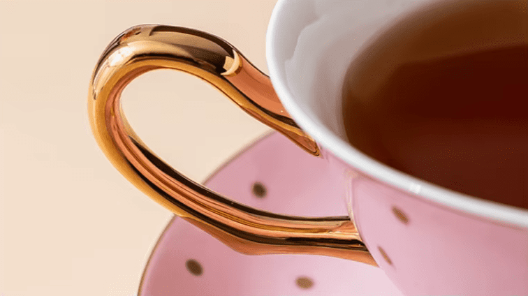 - Subtelny róż i złoto: Unikatowe połączenie pastelowego odcienia z delikatnymi, złotymi akcentami, które podkreślają kobiecy charakter filiżanki.