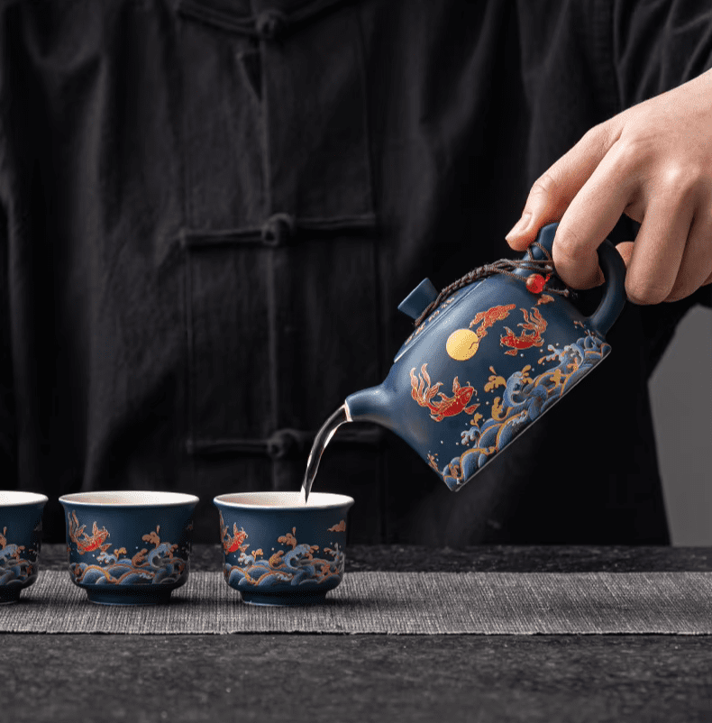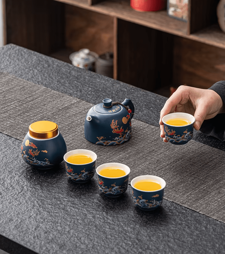 Elegancki design – Inspirowany chińską tradycją, wyróżnia się detalami i żywymi barwami (niebieski, zielony, czerwony), doskonały do tworzenia wyjątkowej atmosfery podczas parzenia herbaty.
