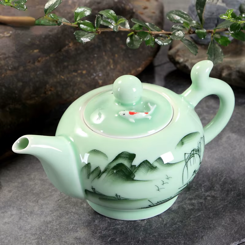 Unikalne rękodzieło – Ręcznie formowany i szkliwiony czajniczek Celadon, który łączy wiekową tradycję Longquan z nowoczesną perfekcją, zapewniając wyjątkową estetykę i trwałość.