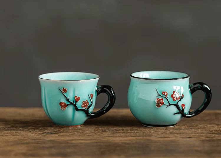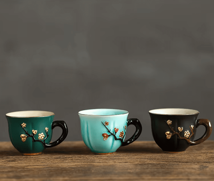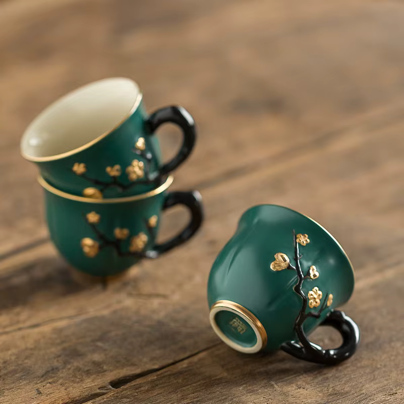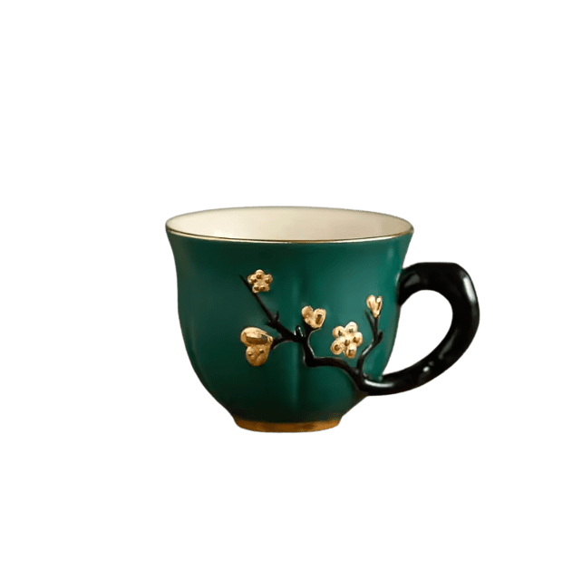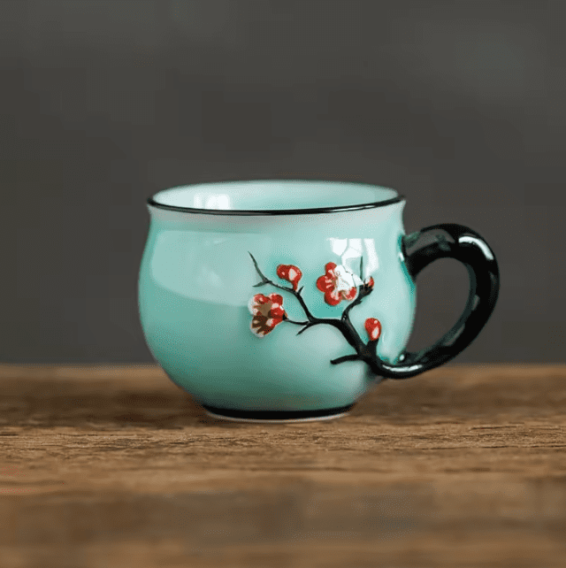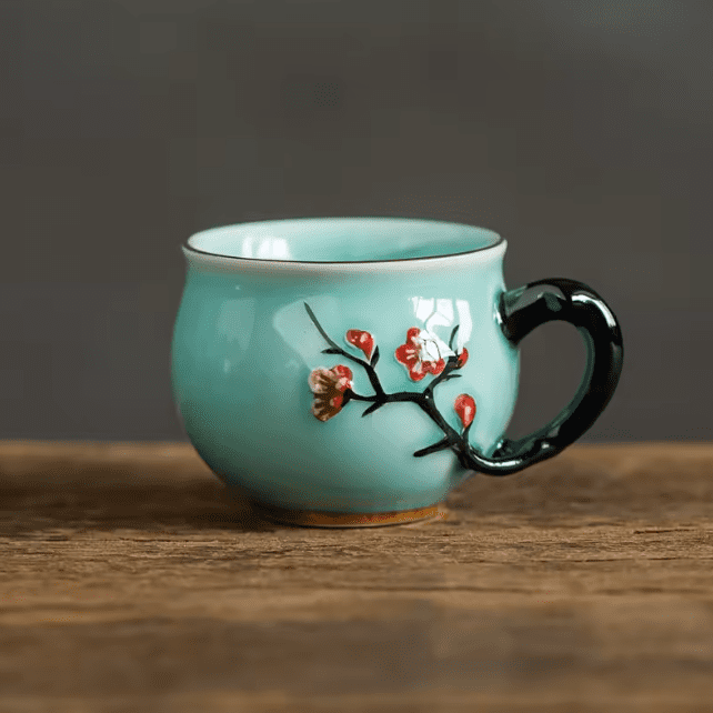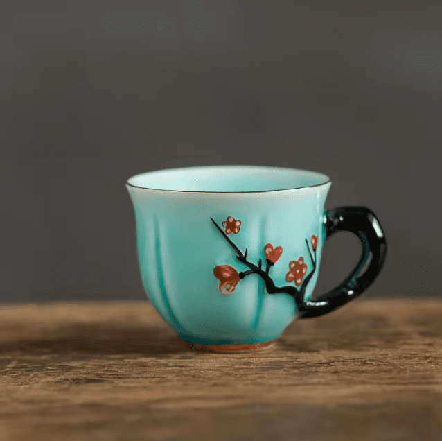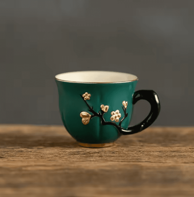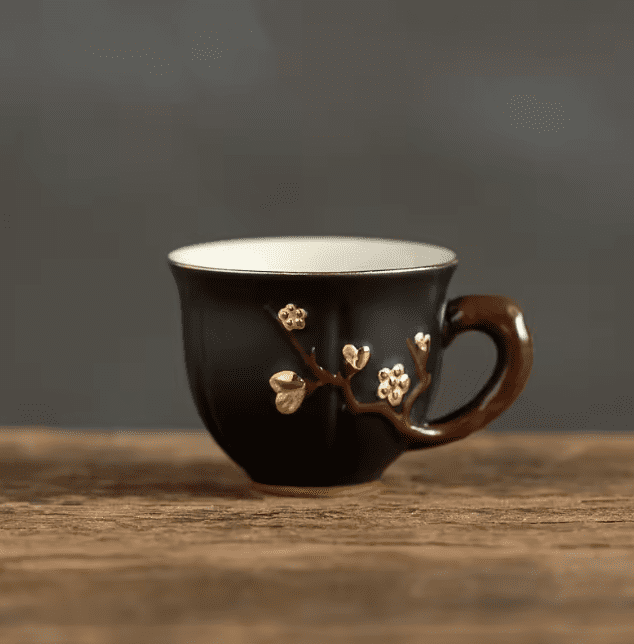 Motyw śliwy: Wzór reliefu inspirowany tradycyjną sztuką chińską nadaje filiżance elegancji i oryginalności, zachwycając zarówno kolekcjonerów, jak i miłośników herbaty.
