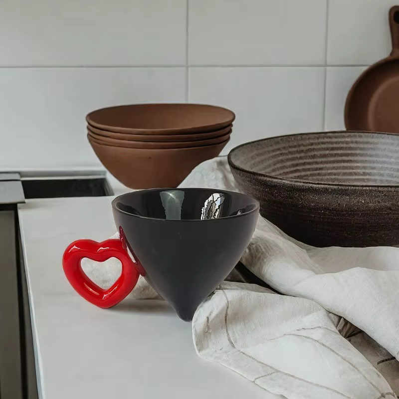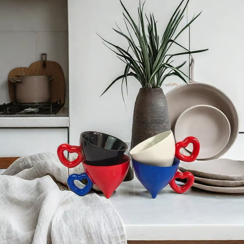 Kreatywna filiżanka ceramiczna (120 ml) z uchwytem serce – idealny prezent do kawy