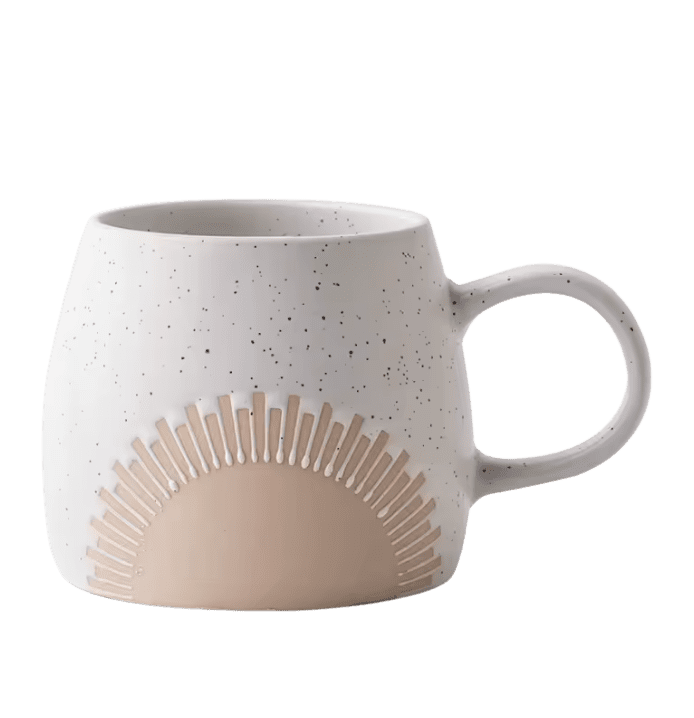 Specyfikacja: Kubek ceramiczny 450 ml – Vintage styl, matowe wykończenie i minimalistyczny wzór słońca