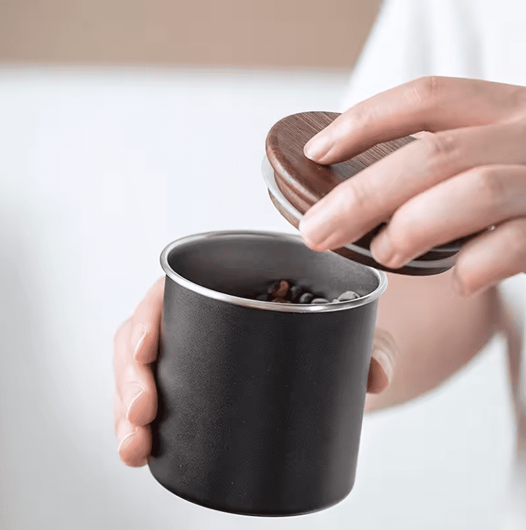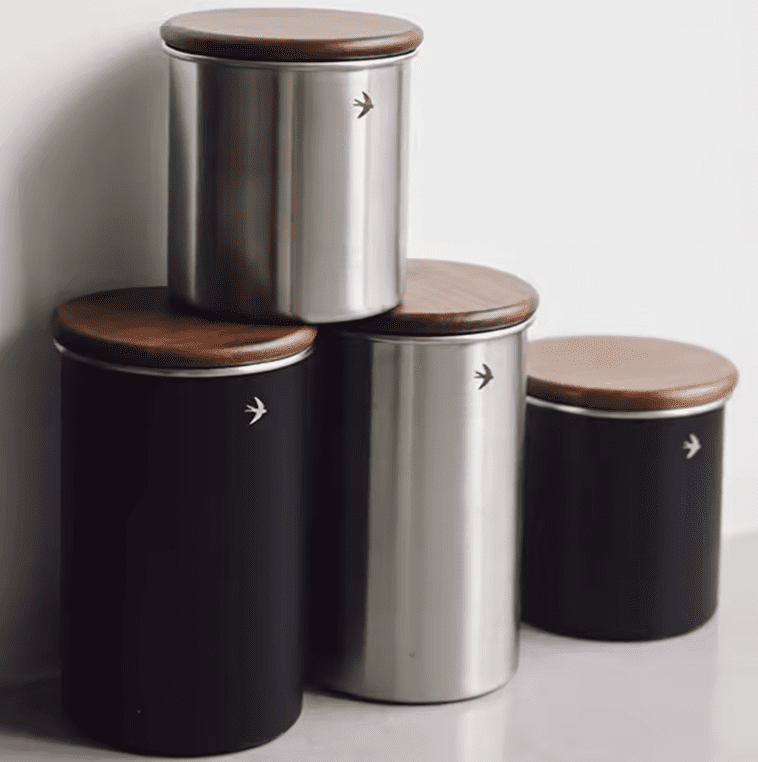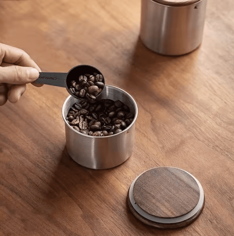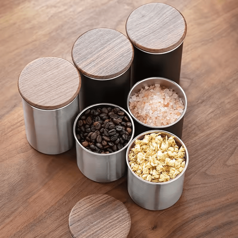 Dwie pojemności – 380 ml i 560 ml – idealne do przechowywania kawy ziarnistej, przypraw, orzechów, soli lub płatków.