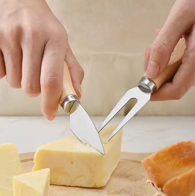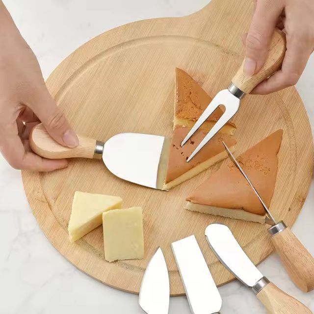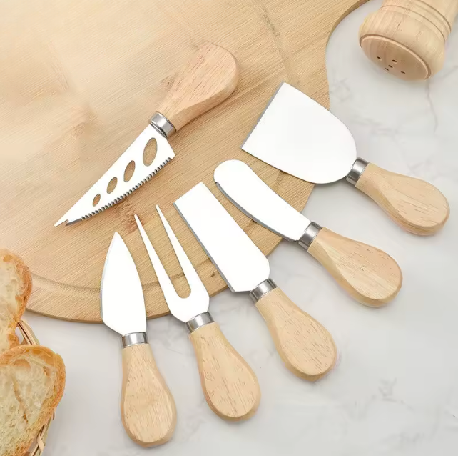 Zestaw 6 noży do sera – stal nierdzewna i drewniane uchwyty dla miłośników serów