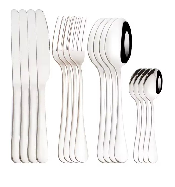 Komplet dla 4 osób – W zestawie 4 noże, 4 widelce, 4 łyżki stołowe i 4 łyżeczki – idealny wybór do codziennego użytku lub przyjęć.