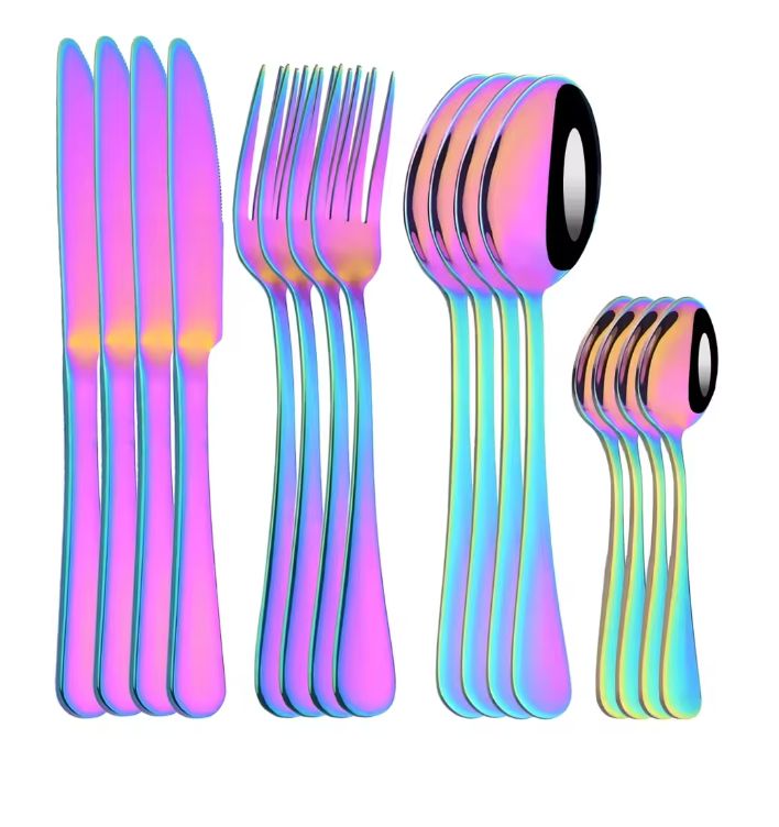 Specyfikacja: Luksusowy zestaw sztućców 16 szt. – stal nierdzewna do zmywarki, 7 kolorów, elegancja dla 4 osób