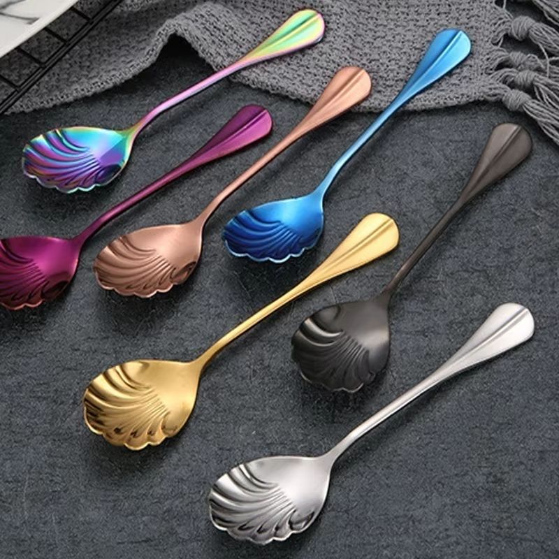 Łyżeczka muszla – stal nierdzewna 13,3 cm, 7 kolorów do kawy i deserów