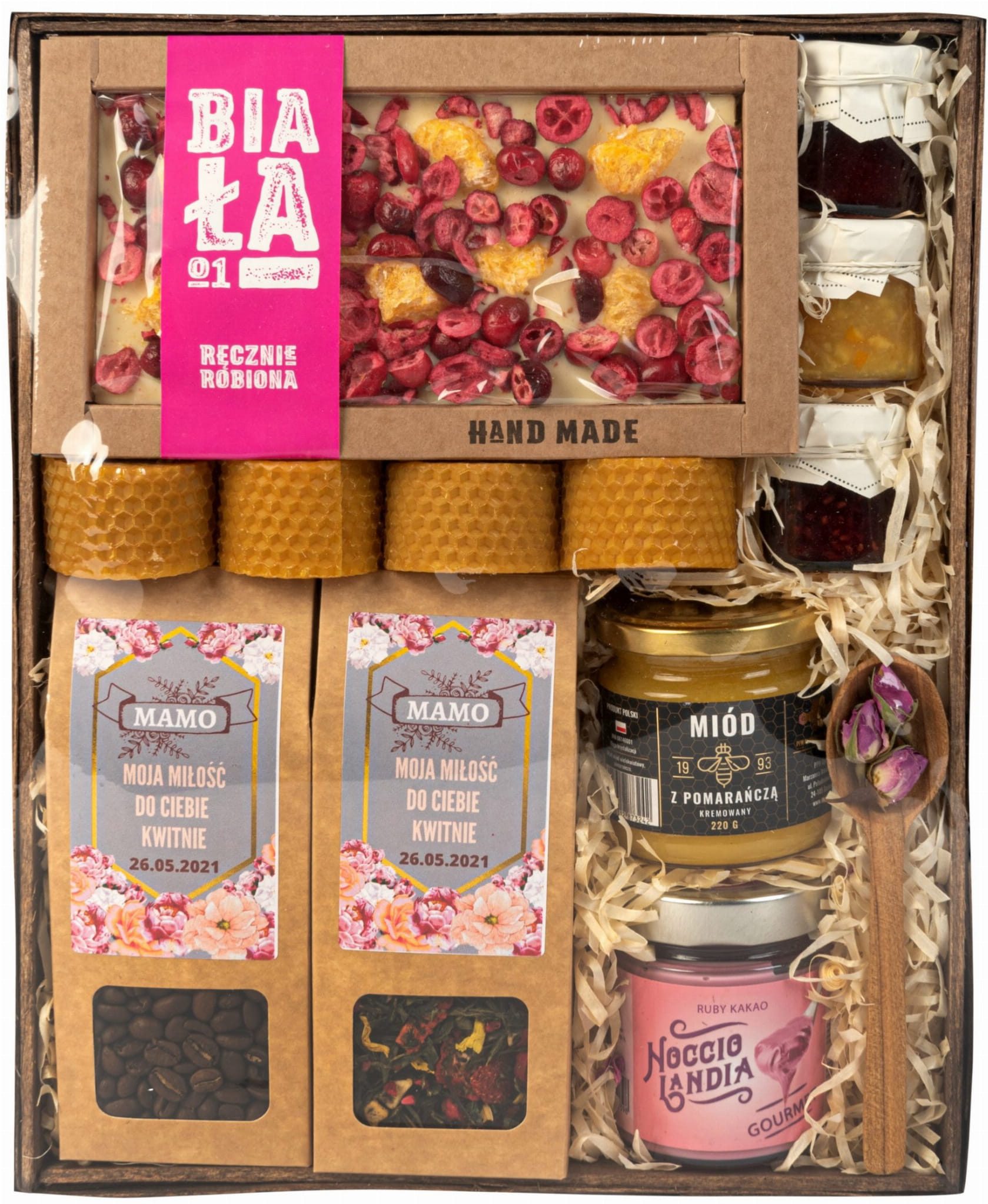 - Unikalność i oryginalność: Nasz kosz prezentowy został starannie zaprojektowany i wypełniony unikalnymi produktami, które na pewno zaskoczą i zachwycą Twoją Mamę.