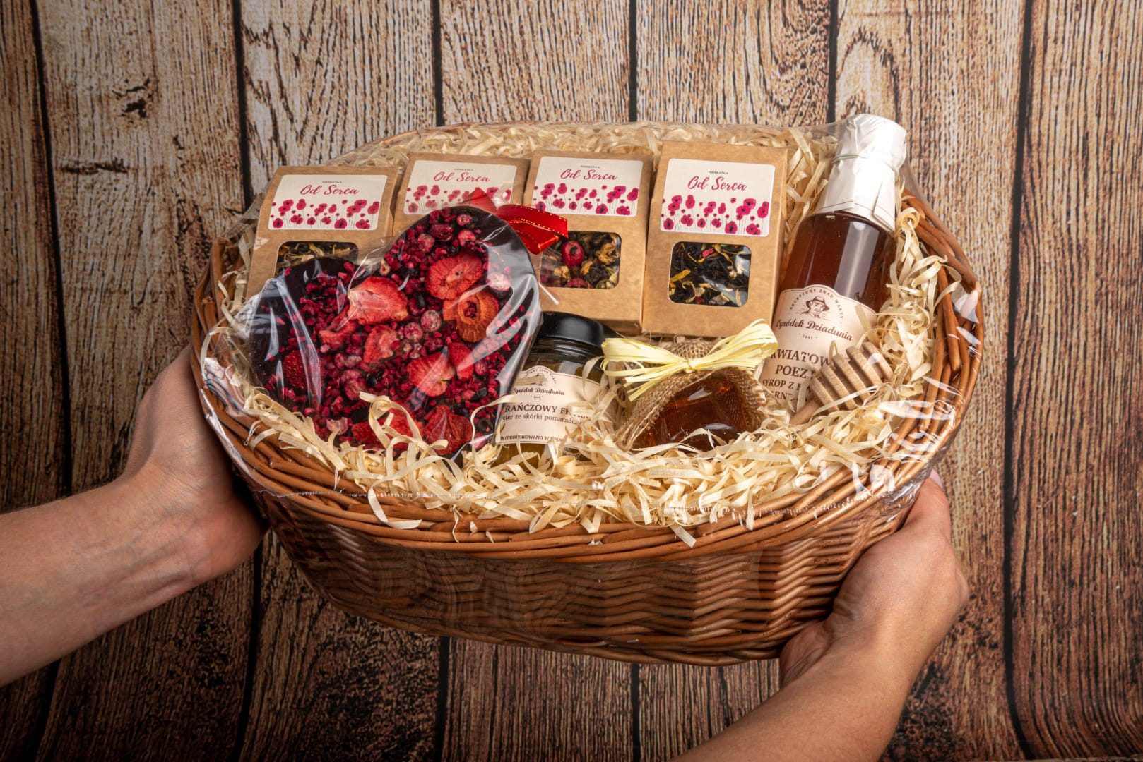 - Wszechstronność: W zestawie znajduje się coś dla każdego – od aromatycznych herbat przez słodkie przysmaki po naturalne przetwory. To sprawia, że nasz kosz prezentowy jest idealnym prezentem niezależnie od okazji.