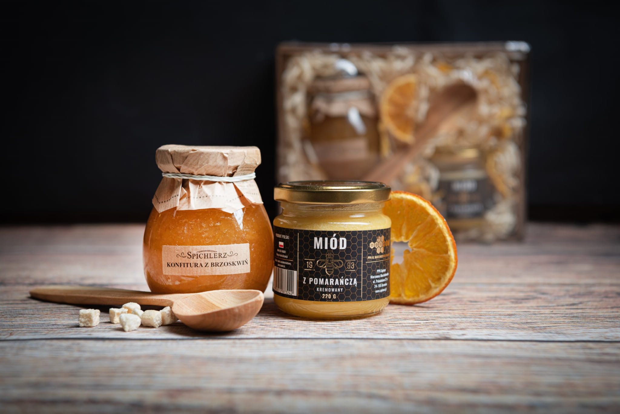 - Unikalny smak: Naturalny miód kremowany z pomarańczą oraz konfitura z brzoskwiń to wyjątkowe połączenie smaków, które zadowoli każde podniebienie.