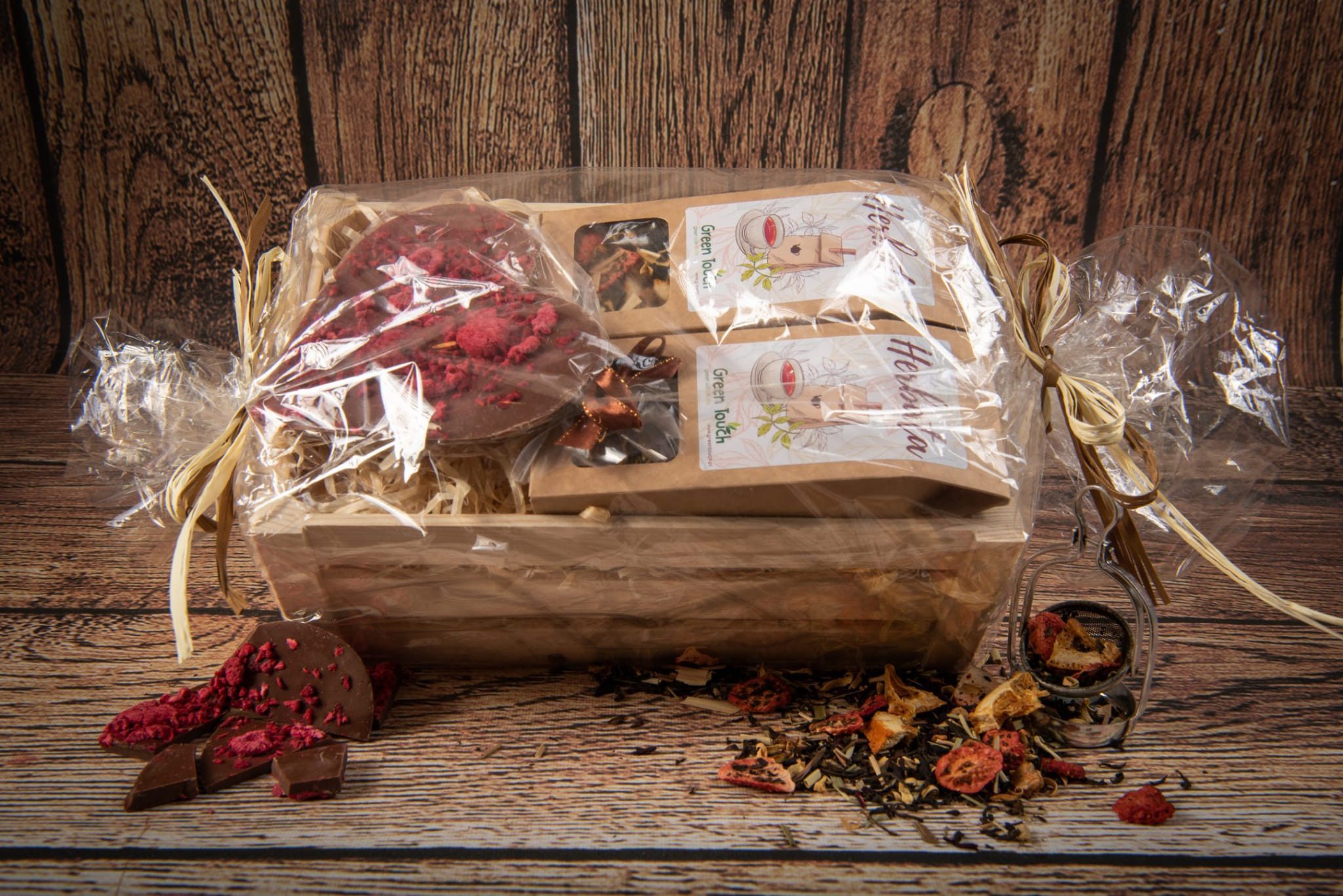 Podaruj bliskim coś więcej niż tylko prezent – podaruj im chwile relaksu, satysfakcję dla podniebienia i estetyczne zadowolenie. Nasza drewniana skrzynka z herbatami okazjonalnymi i czekoladą w kształcie serca z owocami to więcej niż zwykły zestaw – to autentyczne doświadczenie dla zmysłów.