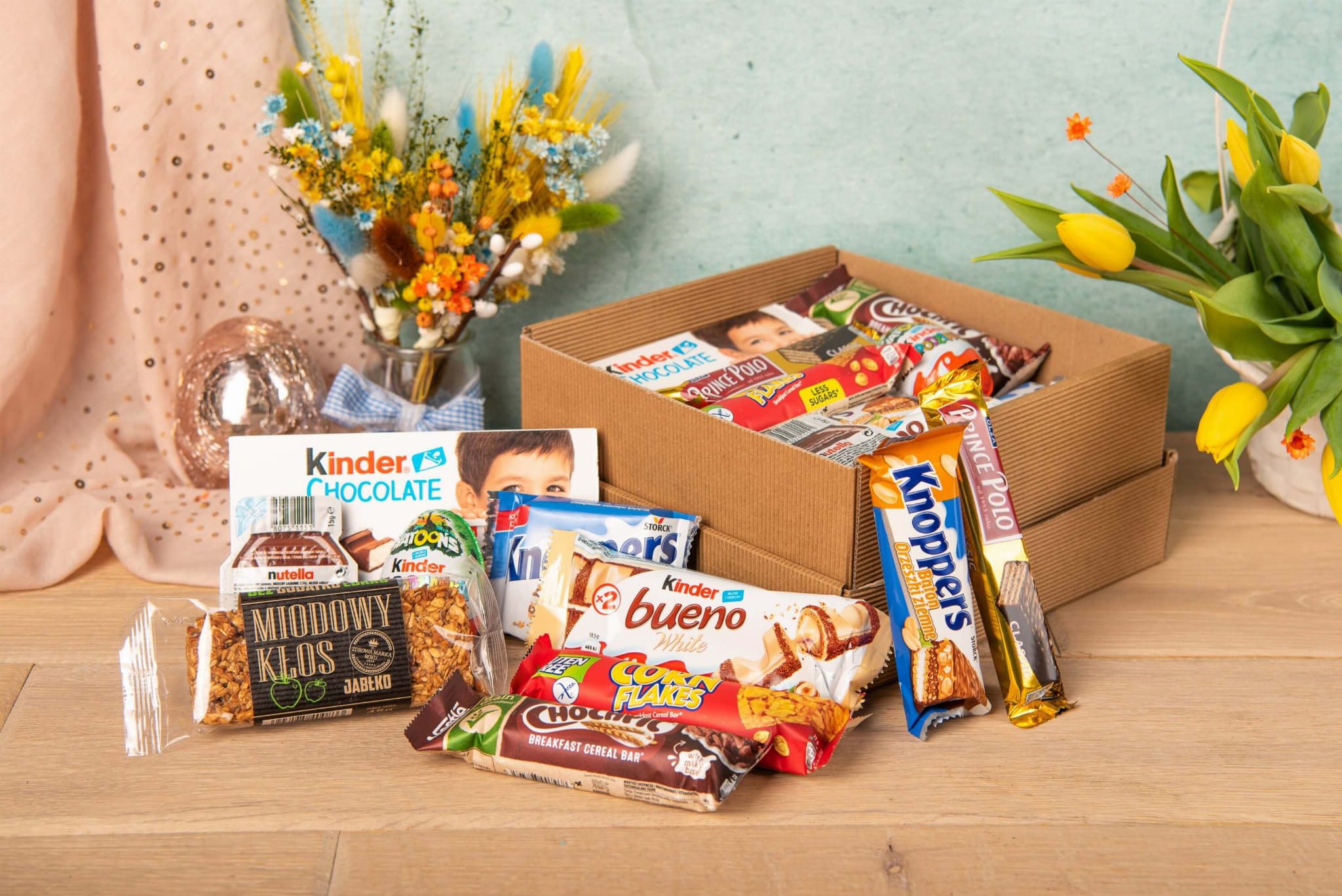 Specyfikacja: Zestaw słodyczy – box Kinder dla dzieci na Wielkanoc